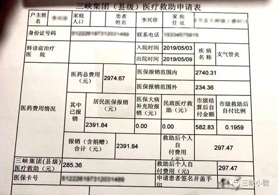 受助患者医疗报销单据中的禁漫 (县级)医疗救助申请表
