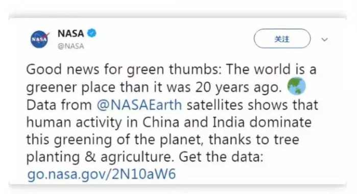 你还记得吗,不久前美国国家航空航天局(NASA)在一条推特中欣喜表示,过去20年中,世界变得越来越“绿色”了。