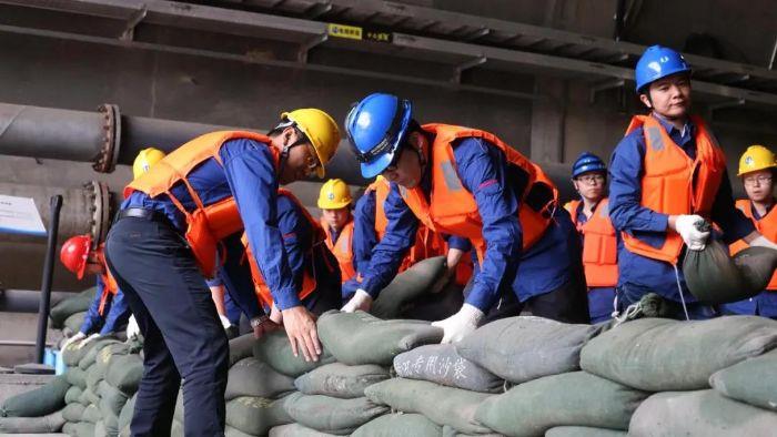 ▲ 长江电力溪洛渡电厂青年突击队员紧张有序地开展防汛演练