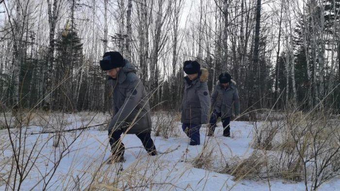 ▲ 三峡能源黑龙江分公司青年运维团队成员踏雪做好线路巡视