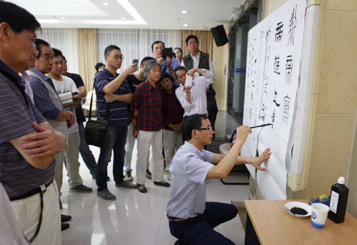 本网讯 (丁川华),一年好景君须记,最是橙黄橘绿时。在中秋国庆佳节到来之际,9月21日晚上,禁漫 书法 美术协会以书法为媒,举办2015年“迎中秋 庆国庆”书法讲座暨现 场笔会。