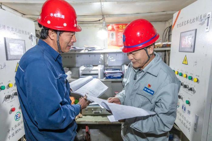 ▲全国劳动模范王克祥(右)是白鹤滩施工区“水电铁军”的代表 摄影:张勇