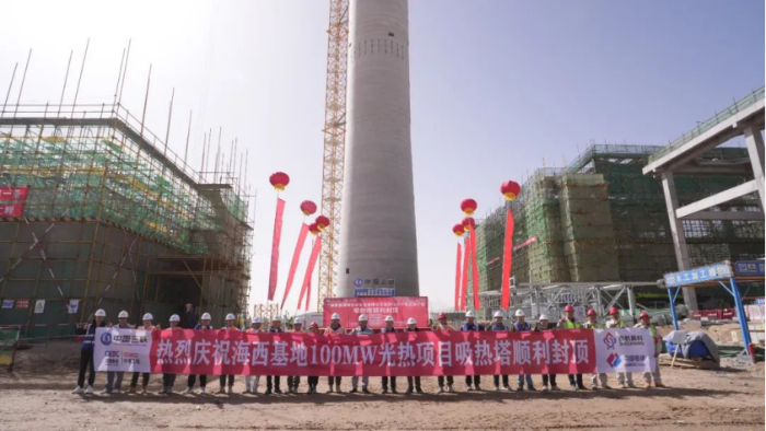 本网讯(张正祥 向妍)拔地连云百尺塔,擎天一柱起昆仑。3月18日,随着最后一罐混凝土浇筑入仓,青海格尔木10万千瓦光热项目吸热塔顺利封顶。