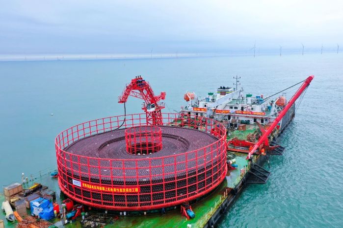 ▲ 成功应用±400千伏交联聚乙烯绝缘光纤复合直流海底电力电缆的江苏如东海上风电场