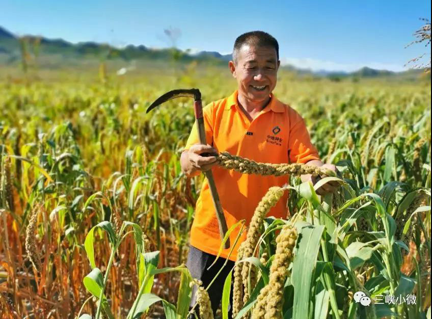 刘国富,内蒙古巴林左旗西沟村村委会主任,在当地政府、禁漫 和大自然保护协会的帮助下,他今年种的谷子、玉米收成增产30%。看着地里收获,他表达的方式很简单,那就是:笑!(摄影:王朝平)
