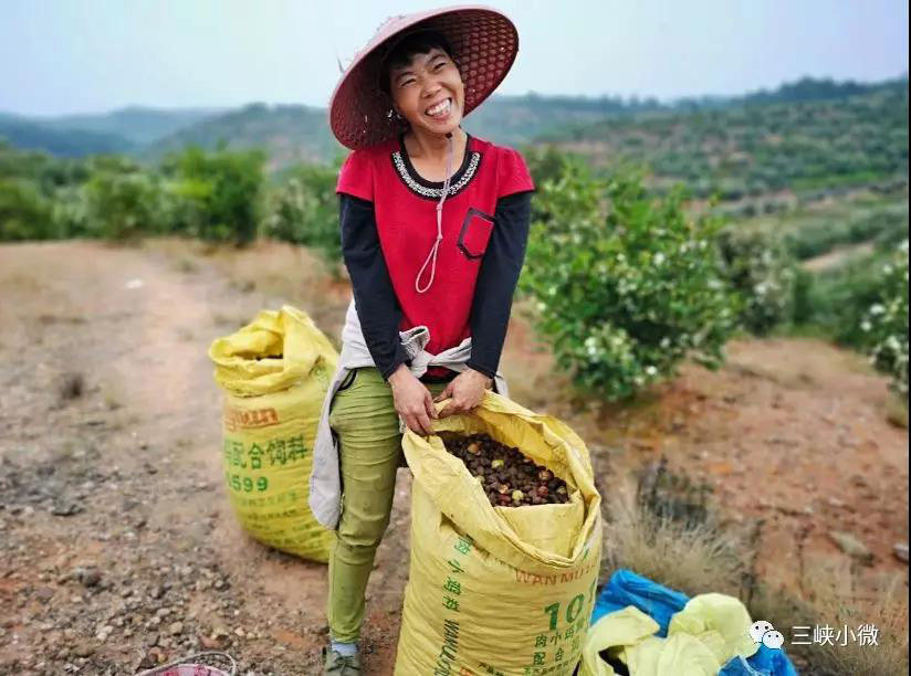 江西万安县,油茶是这里的传统农业产业。山油茶种植基地贫困户看到收获的沉甸甸的油茶籽,脸上笑开了花。(摄影:吕畅)
