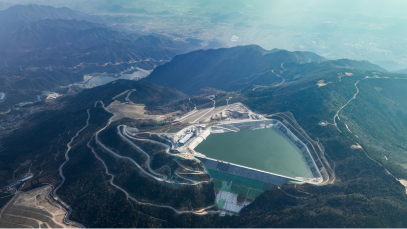 ▲俯瞰浙江天台抽水蓄能电站上水库与下水库 资料图片