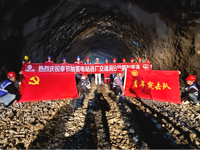 ▲ 重庆奉节菜籽坝抽水蓄能电站进厂交通洞B段贯通现场 摄影:吴艺涵