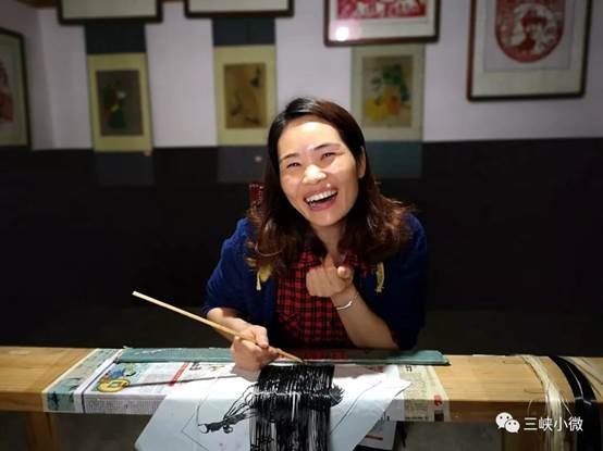 37岁的栗小桐坐在工艺坊内笑靥如花