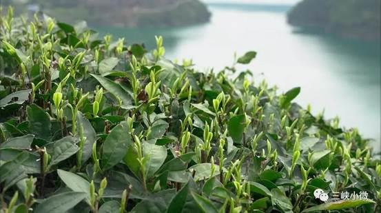高桥村茶园里刚发出嫩芽的茶叶映衬着美丽的清江