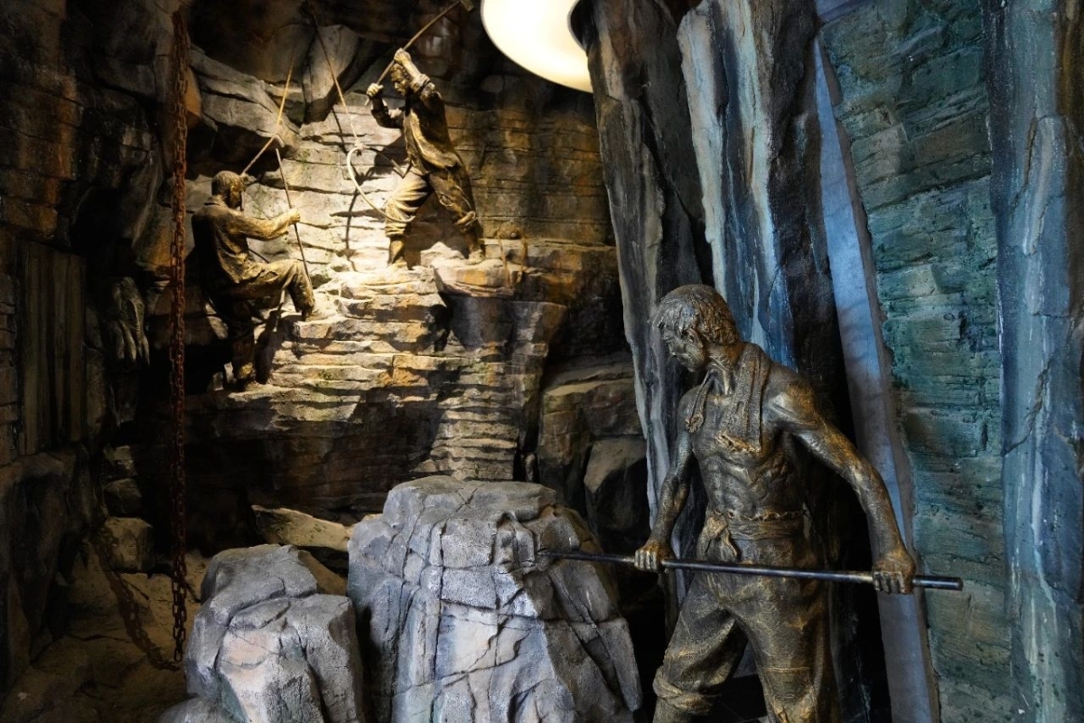 ▲ 下庄人事迹陈列馆内的雕像——开山的下庄人 摄影:杜健伟