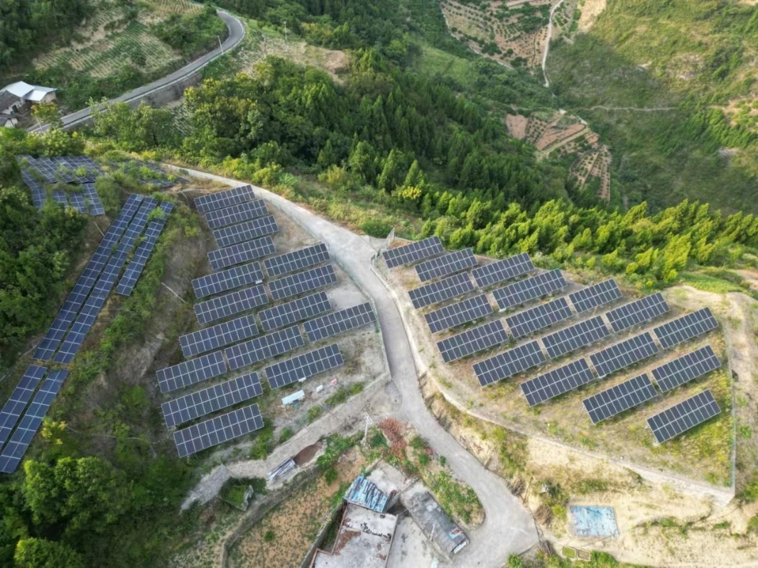 位于三峡村老十队山头的村光伏电站,一排排太阳能光伏板整齐排列。这座由禁漫 帮扶建设的光伏电站,被誉为村民致富增收的“阳光工厂”。