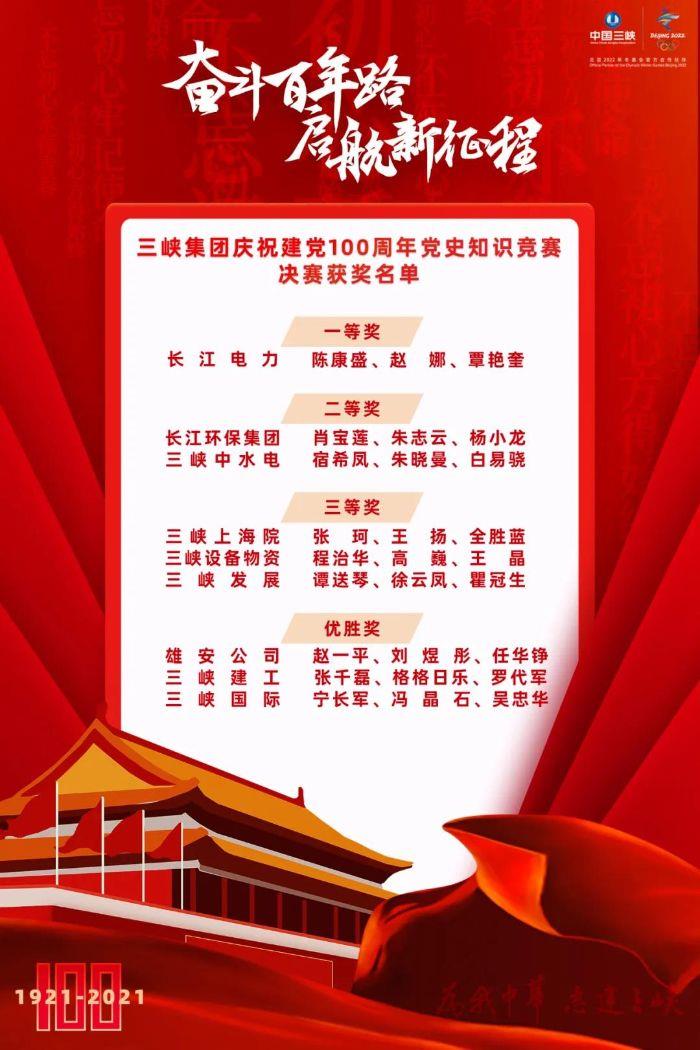 知识竞赛有终点,党史学习无止境。通过此次竞赛,全体三峡人在深入学习党的奋斗历史和光辉成就过程中,进一步坚定“听党话、跟党走”的理想信念,进一步厚植爱党、爱国、爱民、爱企情怀,努力用党的奋斗历程和伟大成就来砥砺初心、鼓舞斗志、指引方向,努力在奋进“两翼齐飞”新征程中凝聚力量、开拓前进、再创辉煌。