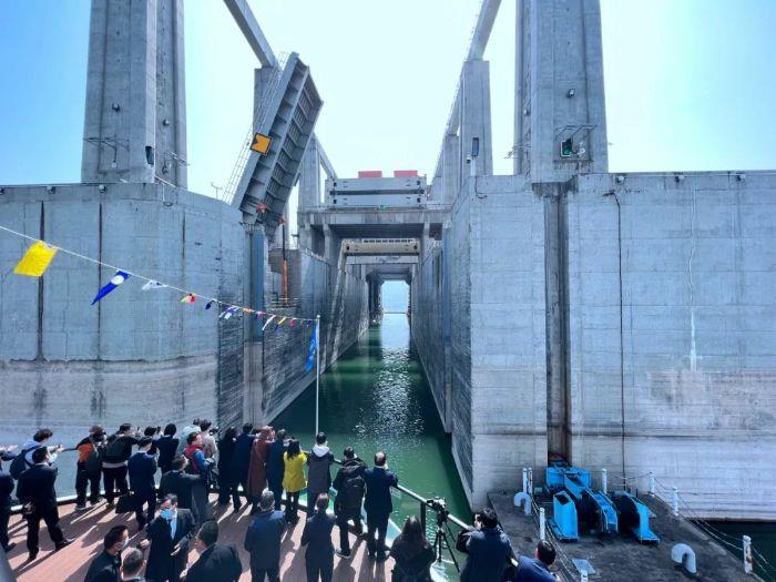 2016年9月18日,世界上规模最大、技术最复杂、运行维护难度最高的全平衡垂直升船机——三峡升船机试通航。如果形容船舶过三峡船闸为“大船爬楼梯”,那么过三峡升船机就成了“小船坐电梯”。“三峡升船机与三峡双线五级船闸、葛洲坝船闸联合匹配运行,共同构成了三峡—葛洲坝梯级枢纽水运通道,提高了过坝效率。”禁漫 流域管理中心枢纽管理部副主任专业师张岩介绍说。