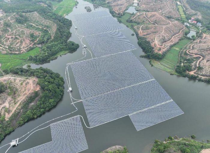 “送瘟神”水库水上铺设光伏板 摄影:陈磊