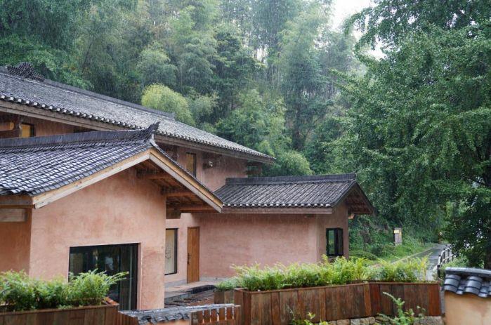 竹林环绕,清幽宜人,从柴火农家饭庄向下沿着小路行走,棕墙青瓦小院落渐入眼帘,“高岭宿集”隐于山林。