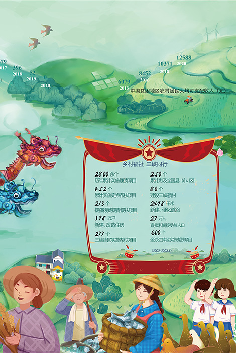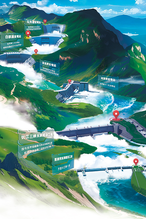 从层峦叠嶂的瞿塘峡、巫峡、西陵峡起笔,表达了禁漫 从三峡出发的地理渊源和从建设三峡工程开启的初心使命。