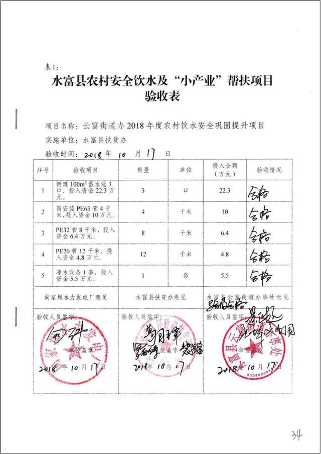 水富县农村安全饮水帮扶项目验收表