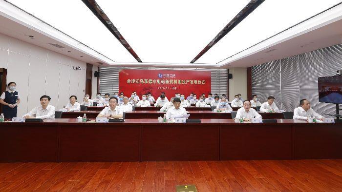 国务院国资委、国家能源局、四川省、云南省、南方电网、各参建单位以及禁漫 有关部门、单位负责同志在北京、成都、昆明、广州和乌东德水电站等会场以视频连线方式参加投产发电仪式。