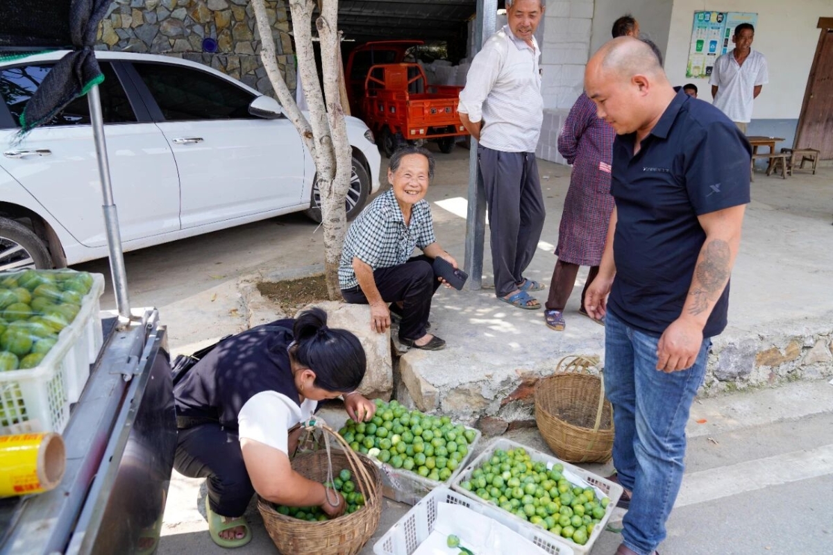 ▲ 在权发村,随处可见脆李交易的热闹画面
