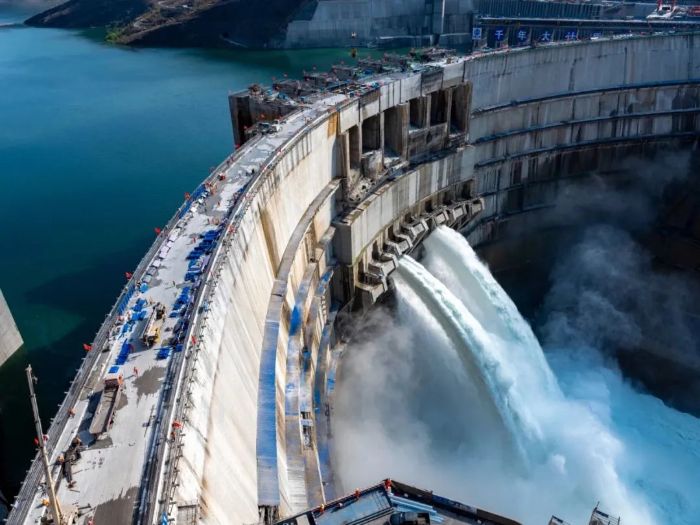 2021年6月28日,习近平总书记致信祝贺白鹤滩水电站首批机组安全准点投产发电。次年12月31日,习近平总书记在新年贺词中点赞白鹤滩水电站全面投产,为世界最大清洁能源走廊全面建成画上圆满句号。