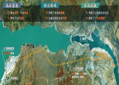 金沙江下游山高谷深,河道狭窄,采用传统高坝过鱼设施技术难度大、安全风险高。对此,乌东德水电站创新提出了“尾水集鱼、仿生转运、动水放流、智能监控”的全过程协同过鱼理念,建成国内首创的300米级特高拱坝集运鱼系统。