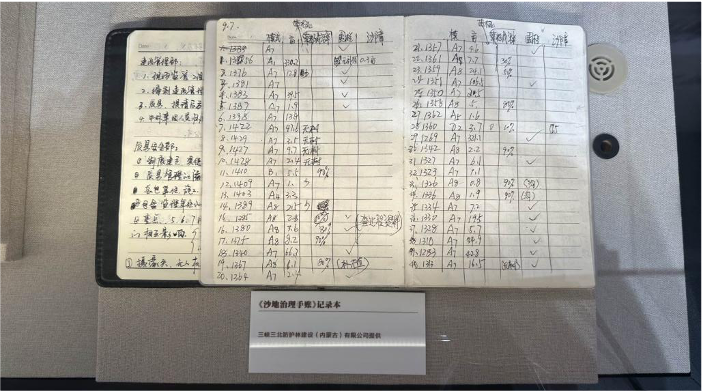 ▲ 在三峡工程博物馆展出的《沙地治理手账》记录本 摄影:毛庆